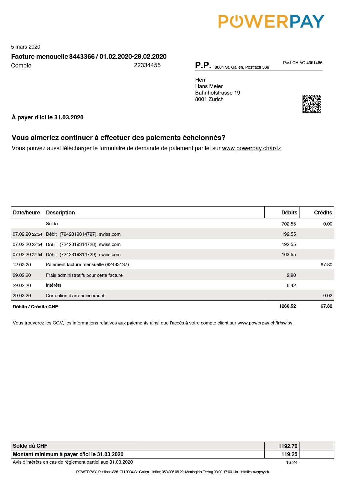 Si vous optez pour le paiement en plusieurs fois, le montant restant dû sera mentionné sur votre facture mensuelle. Le paiement en plusieurs fois engendre des intérêts.